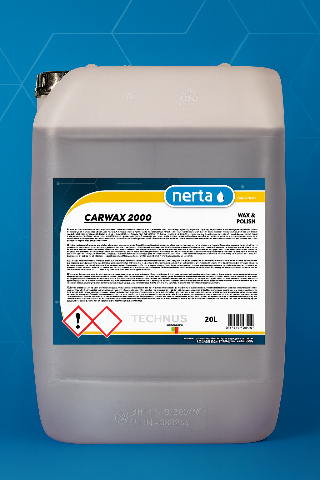 Nerta Carwax 2000 to wosk nabłyszczający do myjni (tunelowych, samoobsługowych i ręcznych), który przyspiesza osuszanie, nadaje wysoki połysk i tworzy trwałą warstwę hydrofobową. Formuła bez silikonu – idealna do systemów obiegu zamkniętego wody i twardej wody. pH ok. 6, surfaktanty biodegradowalne >90%.