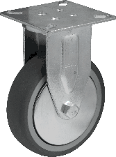Koło z serii instytucjonalnej z szarym bieżnikiem z gumy termoplastycznej (TPE) z łożyskiem ślizgowym stosuje się głównie w regałach, koszach towarowych, ekspozytorach reklamowych i produktowych. Często ma również zastosowanie w domu np. przy stołach, szafkach, pufach. Szary bieżnik nie pozostawia śladów na powierzchniach, nie niszczy ich i nie rysuje.