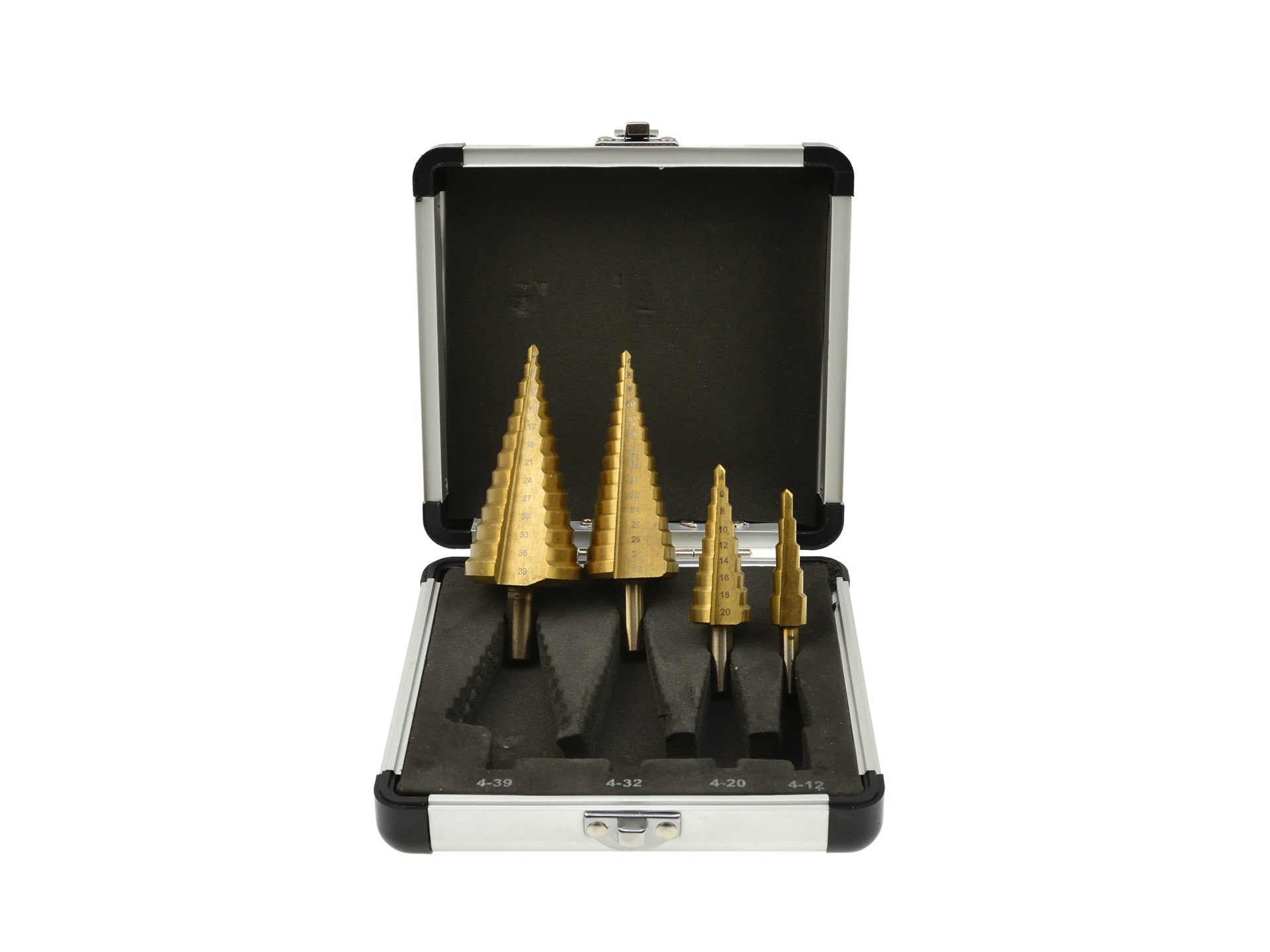 Zestaw wierteł stożkowych wykonanych ze stali szybkotnącej HSS dodatkowo pokrytej tytanem. Wiertło stopniowane co 2 mm z uchwytami cylindrycznymi i czytelną numeracją. Przeznaczone do metali, blach stalowych cienkościennych, tworzyw sztucznych.